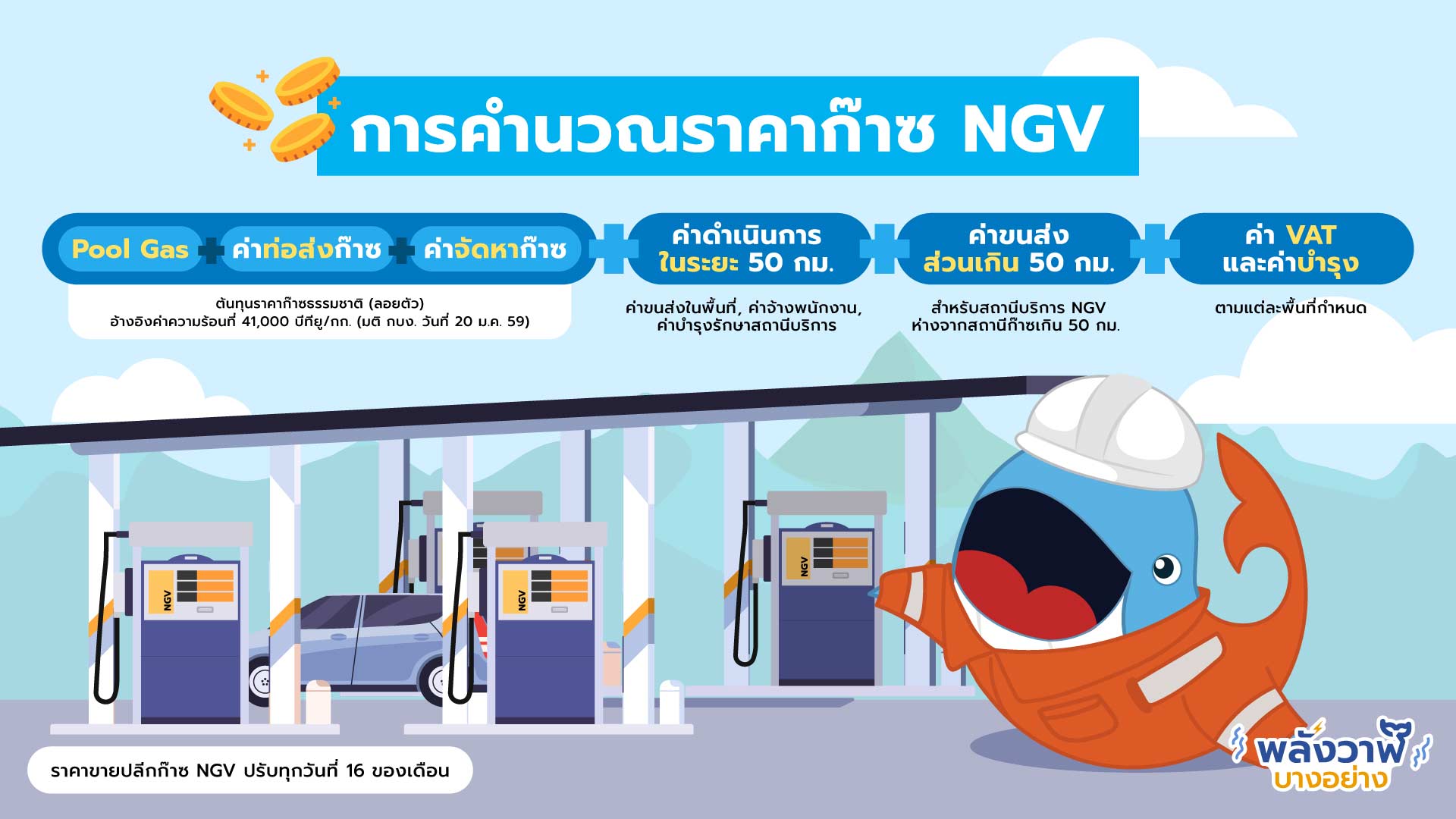 โดยราคา NGV จะปรับทุกวันที่ 16 ของเดือนโดยคำนวณตามสูตรราคาที่ได้รับอนุมัติจากภาครัฐ และประกาศให้ทุกคนรู้ล่วงหน้า