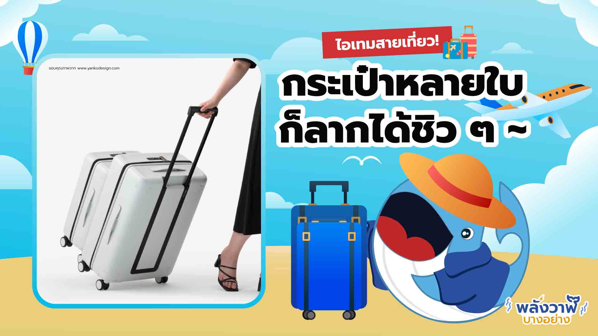 เพื่อน ๆ สายเที่ยวทุกคน วันนี้พี่วาฬมีนวัตกรรมที่มาปฏิวัติวงการกระเป๋าเดินทาง ที่จะช่วยให้ทุกคนลากกระเป๋าหลายใบได้ชิว ๆ แถมยังรักษ์โลกอีกด้วย! ✨