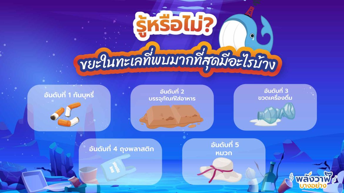 📌พี่วาฬเชื่อว่าหลายคนต้องตกใจเมื่อรู้ว่าประเทศไทยของเราติดอันดับ Top 10 ที่สร้างขยะในท้องทะเลมมากที่สุด ซึ่งส่งผลกระทบต่อสิ่งแวดล้อมในทะเลเป็นอย่างมากเลย พี่วาฬเห็นขยะอยู่ใต้ทะเลเพียบเลยล่ะ แล้วรู้หรือไม่? มีขยะประเภทในถูกทิ้งลงทะเลบ้าง มาดูกัน ✅อันดับที่ 1 ก้นบุหรี่ ✅อันดับที่ 2 บรรจุภัณฑ์ใส่อาหาร ✅อันดับ…
