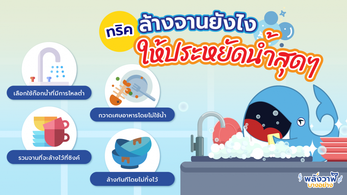 💦 หลายคนบอกว่าไม่อยากล้างจานเพราะกลัวเปลืองน้ำใช่ม้า วันนี้พี่วาฬมีวิธีง่ายๆ ที่จะทำให้ทุกคนล้างจานได้ประหยัดน้ำกว่าเดิมอย่าลืมเอาวิธีพวกนี้ไปใช้กันนะ ✔️ การเลือกใช้ก๊อกที่มีการไหลต่ำจะช่วยชะลอการไหลของน้ำ ✔️ การกวาดเศษอาหารทิ้งโดยไม่ใช้น้ำเป็นการลดปริมาณน้ำที่จะใช้ในการล้างจานแต่ละครั้ง ✔️ การรวมจานที่จะล้าง…