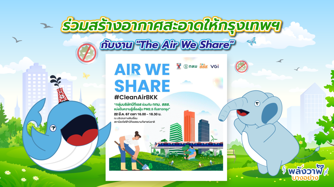 💨 ฝุ่น PM2.5 กำลังส่งผลต่อสุขภาพของคุณอยู่รึเปล่า? มาร่วมหาทางแก้ไขปัญหานี้ไปด้วยกัน สสส. ร่วมกับ กทม. BTS Group และ VGI  เชิญชวนคุณร่วมกิจกรรม The Air We Share 📅 วันที่ 22 มีนาคม – 3 เมษายน 2567 นี้ 📍 ที่ Skywalk ทางเชื่อมสถานีรถไฟฟ้าบีทีเอสสนามกีฬาแห่งชาติกับ MBK และหอศิลป์ กทม. โดยในงานจะมีการให้ควา…
