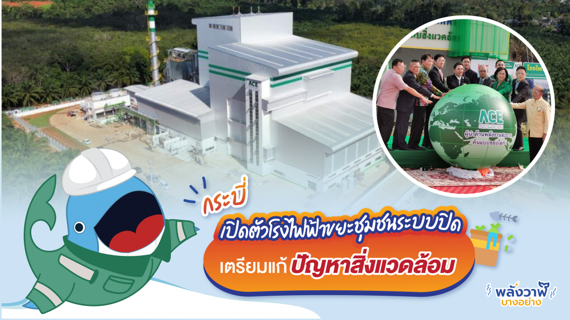 จังหวัดกระบี่ ร่วมมือกับบริษัท แอ๊บโซลูท คลีน เอ็นเนอร์จี้ จำกัด (มหาชน) หรือ​ ACE เปิดโรงไฟฟ้าขยะชุมชนต้นแบบพลังงานสะอาดกำลังการผลิตติดตั้งรวม 6 เมกะวัตต์ . โรงไฟฟ้านี้ตอบโจทย์ยกระดับสู่เมืองท่องเที่ยวระดับพรีเมียม ตามแนวคิด KRABI Goes Green ต้อนรับนักท่องเที่ยวเป็นโมเดลแก้ปัญหากำจัดขยะชุมชนที่เป็นมิตรต่อสิ่…