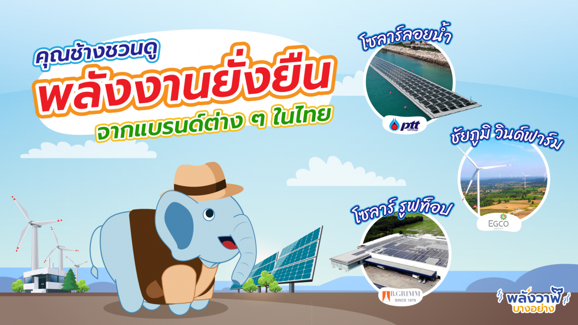 พลังงานทดแทนอย่างยั่งยืนในไทยมีอะไรบ้าง คุณช้างสายลุยของแก๊งพร้อมพาไปดูอะไรเจ๋งๆ ที่เกิดขึ้น เจ๋งไม่เจ๋งไม่รู้ เพราะดีต่อสิ่งแวดล้อมอีกด้วย 🌳 ✅ โซลาร์ลอยน้ำ กลุ่ม ปตท. : เป็นการทำฟาร์มโซลาร์เซลล์ลอยน้ำเพื่อประหยัดพื้นที่บนบก รวมถึงยังดำเนินการดูแลได้ง่ายกว่าบนบกอีกด้วย ✅ โซลาร์รูฟท๊อป บี.กริม เพาเวอร์ : พลังง…